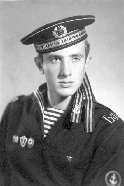 Портретная фотография гвардии матроса Балтийского флота, сделанная в ноябре 1973 года. На принадлежность к этому военно-морскому объединению указывают шифровки «БФ» на погончиках и надпись «КРАСНОЗНАМЕН. БАЛТ ФЛОТ» на ленте бескозырки. Погоны и погончики с шифровками флотов существовали до 1980 года и впоследствии были заменены на единую шифровку «Ф». Лента бескозырки имеет гвардейскую расцветку. Такие ленты носятся членами экипажей гвардейских кораблей и военнослужащими гвардейских частей флота и в настоящее время. На форменной рубахе виден нарукавный знак различия по специальности («штат») морской пехоты. На груди моряка видны знаки «Воин-спортсмен» II ступени, «Специалист 3 класса», «Отличник ВМФ» (на правой стороне) и членский знак ВЛКСМ (на левой стороне). Подписчик канала Андрей Муравьев, приславший свою фотографию, поделился и некоторыми деталями, касающимися снимка: «Форма № 4, без бушлата. Знака «гвардия» нет, т.е. фото сделано после учебной части и знак был получен по возвра