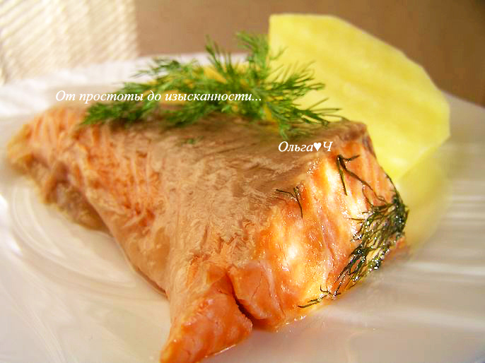 соль, перец по вкусу Приготовление: В чашу мультиварки налейте литр горячей воды, выложите крупно нарезанный картофель и веточку укропа. Кусок лосося натрите солью и перцем. В чашу для пароварки выложите 1-2 веточки укропа, сверху - лосося, накройте оставшимися веточками укропа, установите в мультиварку. Готовьте в режиме "Пароварка" около 30 минут. Снимите кожу с лосося, разделите на порционные кусочки и подавайте с картофелем и салатом из свежих овощей. Приятного аппетита! Вам также могут понравиться:
