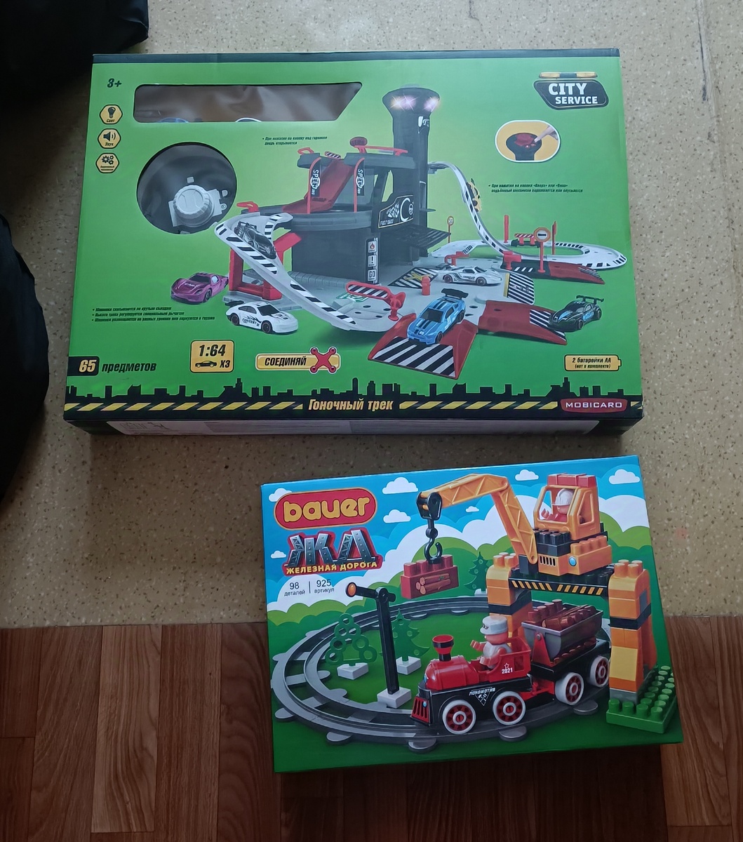 Нам подарили автостанцию и ЖД дорогу конструктор.