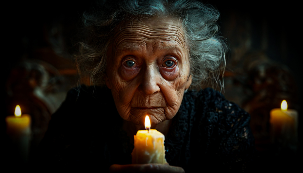 В тесной комнатушке царила мёртвая тишина, словно сама смерть затаилась здесь в ожидании своего часа. У стены, украшенной выцветшим ковром с некогда яркими узорами, мерцала единственная свеча. Её слабый огонёк едва освещал половину комнаты, оставляя остальное пространство во власти густой тьмы, которая жадно поглощала каждый пробивающийся лучик света.