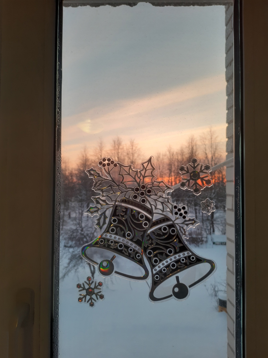 Здравствуйте, дорогие мои друзья! Погода под конец декабря решила нас удивить температурными качелями, вчера -2, сегодня днём -11, ночью обещают -16, а завтра чуть не ноль. Затылок болит. Но сегодня было очень комфортно для меня. Лучше уж пусть морозит, чем каша под ногами. 6 уроков, всего шесть! Правда, размазали их на 2 части, 3 утром и три вечером. Зато в перерыв я успела намыть полы сначала у мамы, потом у себя. Проверила тетради у 8 класса. Заехала в магазин, маме кое-что купила. Прибиралась у Андрея в комнате, заметила , что закат был ярким. Наклейка из Фикс Прайса на окне в детской. Тепличка моя под снегом спит. Почему-то соседка в этом году не укрыла свои розы. Жалко, если вымерзнут, красивые они у неё. Да и просто цветы жалко. А вот другая заботливо укрыла, видно холмик перед её беседкой. Да, мы расплатились с ней за ремонт крыши. Но теперь придётся снова копить, теперь уже на покрытие крыши. Капает в подъезде, капает у нас в ванной, у Людмилы вообще течёт и в санузлах, и