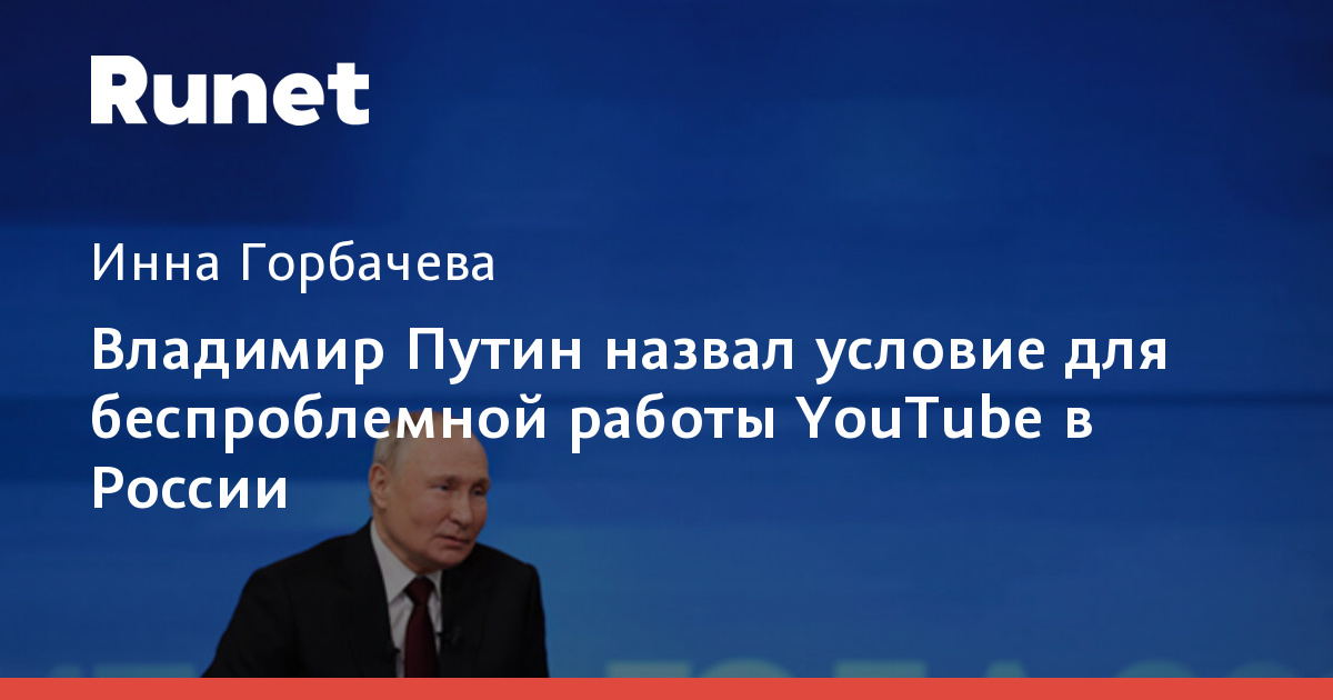 Владимир Путин назвал условие для беспроблемной работы YouTube в России