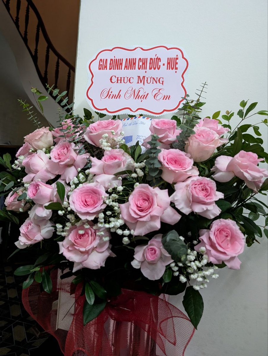 Вот такую корзину розовых роз для Светки, но не Соколовой привезла ранним вьетнамским утром сестра моего мужа. Здесь такие корзинки дарят живым людям, это нормально. Цветочную композицию крепят на флористическую глину, а это значит, что розочки простоят достаточно и будут меня радовать несколько дней. К букету прилагался конвертик, естественно, не пустой. Отличное начало для дня рождения!