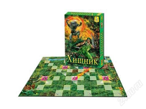 Помесь "кинь-двинь" с "1 против всех" (родоначальник жанра, ага)). Охотники лезут в джунгли, Хищник от них отбивается. Что любопытно, его движение ограничено светлыми клетками, так что остается устраивать засады. А на втором этапе игры охотники лишаются оружия, а Хищник начинает преследовать их всерьез; самый экшен. Условный, конечно, ведь игра очень примитивна. Но любопытная задумка. Фото с tesera.ru #настолки #настольные игры #настольныеигры