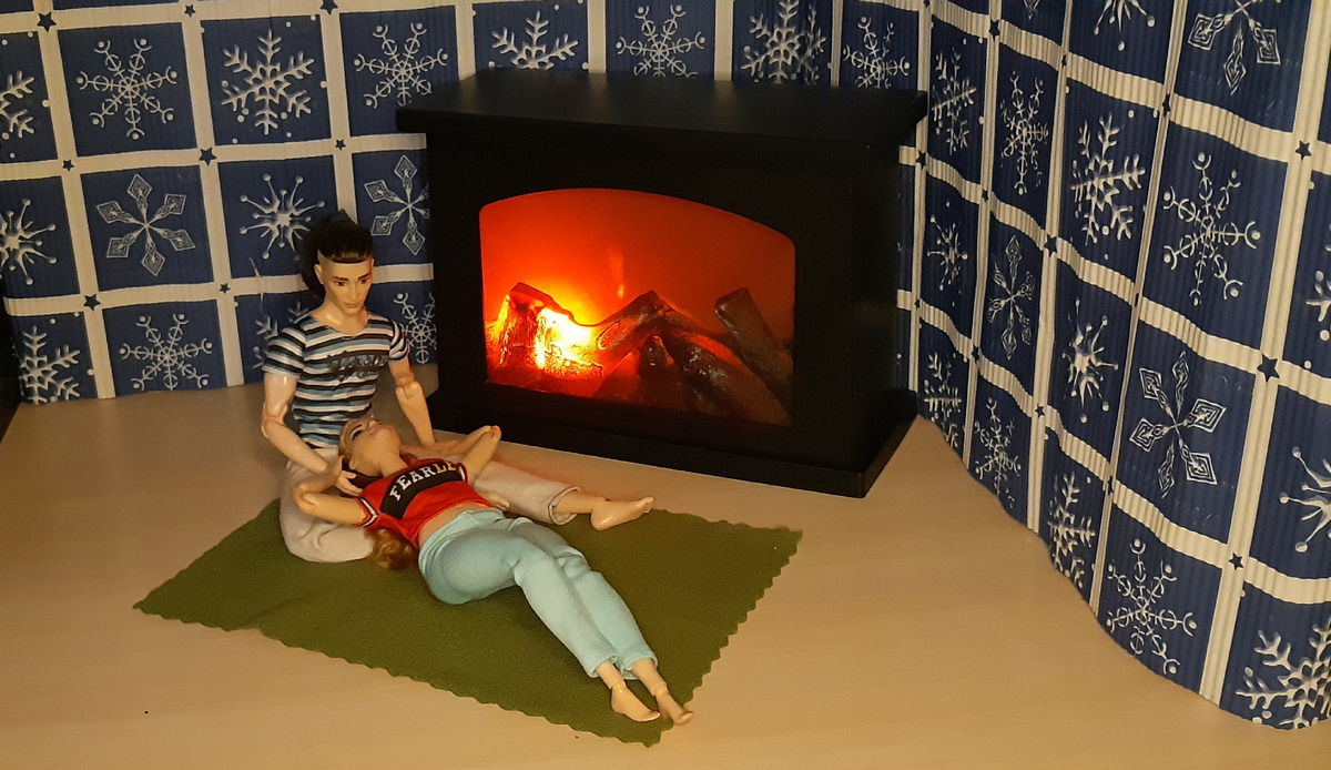 Сейчас стало чуть легче (по крайней мере, стабильно) с мамой, и я ненадолго отвлеклась на то, что бы показать вам новенького парня. Решила, что будет он парой пышке Юле. Давайте прсмотрим на них на фотосессии. К сожалению, не знаю, куда положила фон с заснеженным окном, поэтому фотографировала на фоне "плитки" с зимними узорами и камином. Ребята решили выбраться ненадолго в студию для фотосессии с камином. Следующая статья будет о второй "новенькой" - обновленной Наде с теперь кудрявыми волосами.