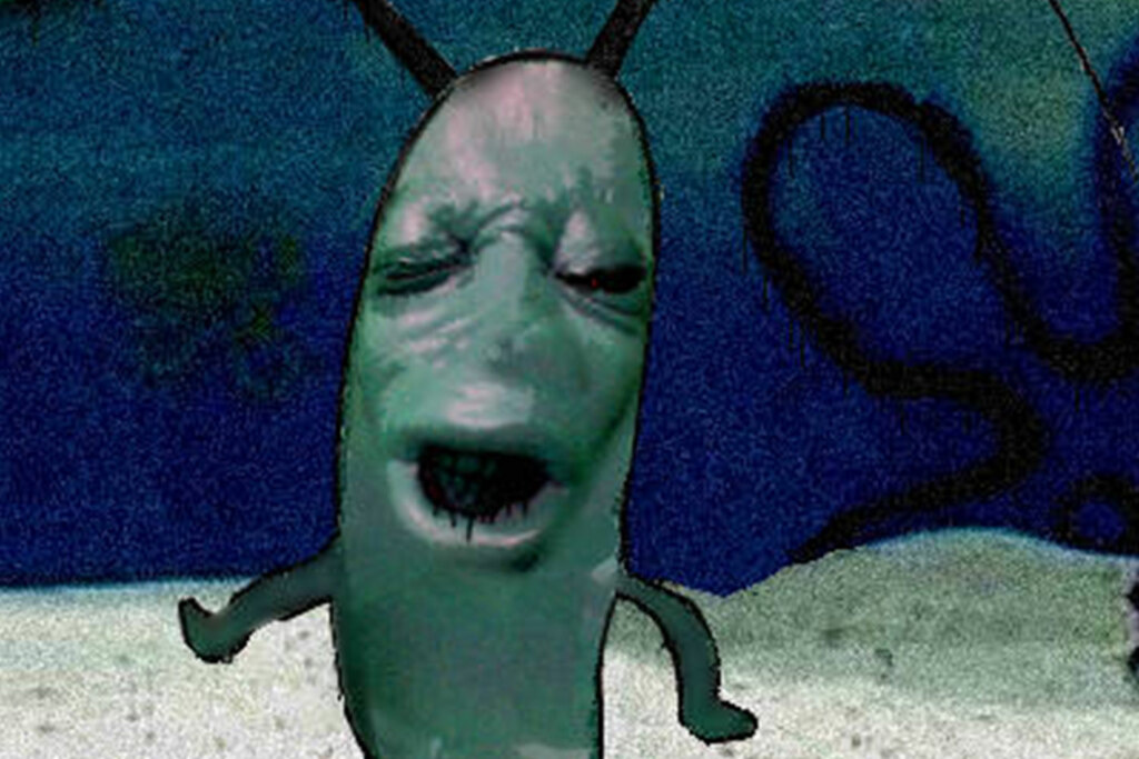 В этом изображении персонаж был трансформирован с целью придать ему жуткий вид: картинка стала зернистой и темной, глаза и рот Планктона приобрели полностью черный цвет, а его лицо было дополнено морщинами и различными деталями. Этот юзер назвал свою работу “Пленктон” (Plenkton).