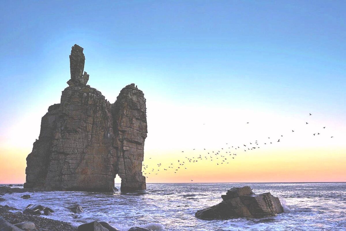 Сегодняшнем выпуске мы расскажем о чуде Дальнегорского района — скале Белая церковь. Волнам, ветру, температурам и времени пришлось усердно потрудиться, прежде чем огромный кусок камня превратился в настоящую природную скульптуру, напоминающую по своим очертаниям храм. Получилось очень правдоподобно! Портики, вход, купола — всё здесь продумано природой до мелочей. Говорят, что 30 лет назад один из «куполов» Белой церкви венчался каменным «крестом». Но время беспощадно ко всему. Величественный кекур, расположившийся у живописного берега Японского моря, возвышается над водной гладью на 20-30 метров и просто поражает воображение. Не зря Белая церковь — один из главных центров притяжения туристов в Рудной Пристани.