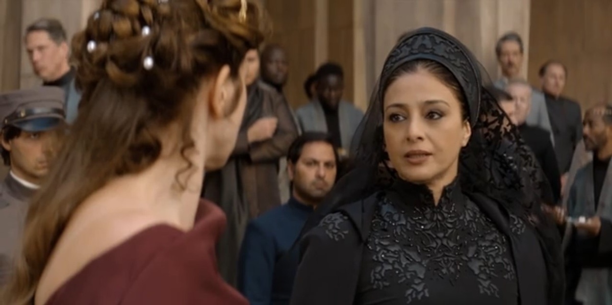 Я надеялся вдруг Харт сейчас воскликнет - «Мама, это же я вернулся! Я тот самый, кого украли у вас с папой всякие там Франчески!» Но, нет, всё проще. У Тулы тем временем совпали данные - Десмонд у нас наполовину Атрейдис, наполовину Харконнен. Тула трясется. А Десмонд и говорит - моя мать была Сестрой и отдала меня космическим бомжам. Его ненависть к Сестринству приобретает ясные очертания, теперь они с императрицей будут бороться вместе. Договор скрепляют … поцелуем, вот этого захода я не понял, явно лишнее.