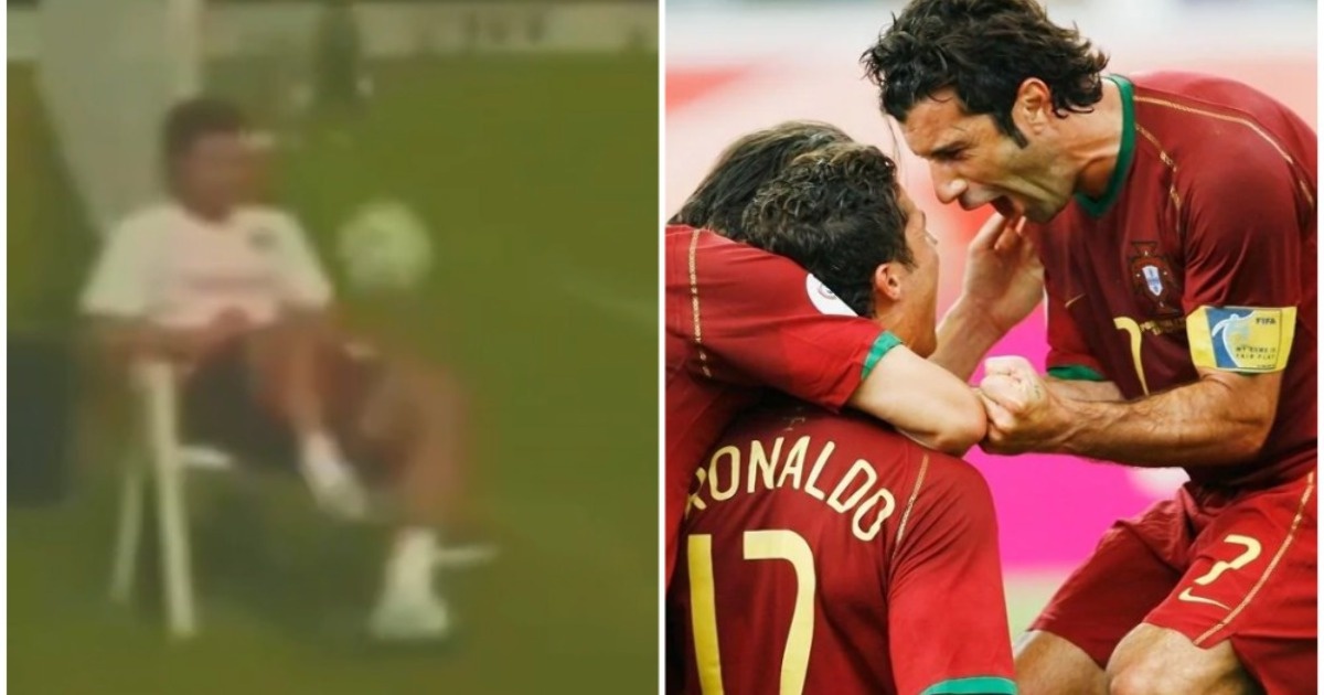 📹Ретро дня. Юный Роналду чеканит мяч вместе с сидящим на стуле Фигу