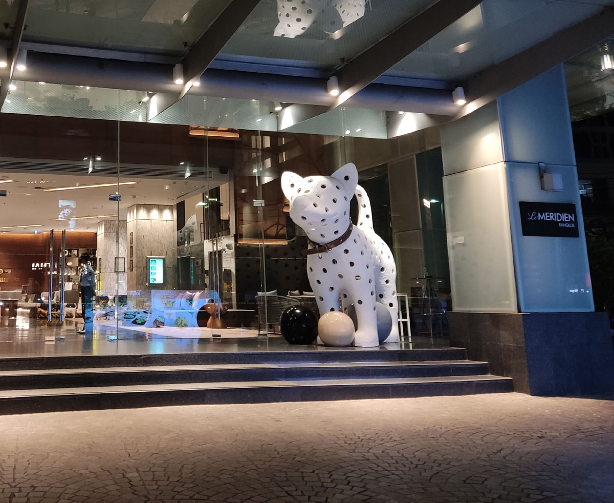 У входа в отель гостей встречает большая белая статуя собаки, ставшая местной достопримечательностью. Фигурки собак меньшего размера расположены также в лобби отеля и на этажах.