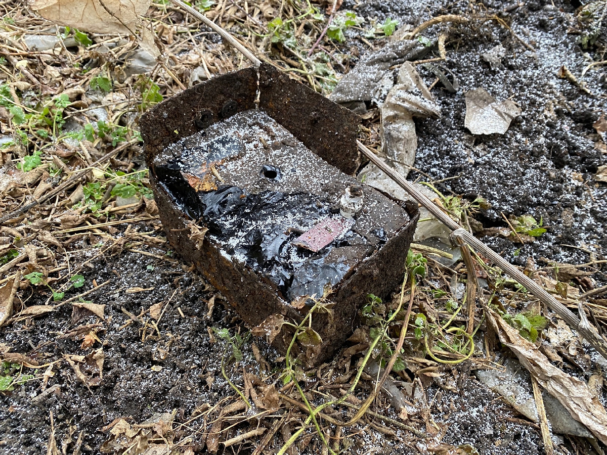 Копали мы как-то с тестем в начале декабря чермет на старой давно уже заброшенной ферме. И нашли там какой-то странный железный ящик, залитый смолой. Постояли, посмотрели на него, да и решили с ним не заморачиваться. Металл там тонкий, и вроде бы не тяжёлый. Надо будет еще смолу эту убирать. Времени много займет. И решили не брать этот ящик. В тот день я как раз снимал видео про нашу прогулку и выложил его здесь, на своем канале. В комментариях отписался подписчик, что зря мы тот ящик не взяли. Внутри должна быть медь. В одном чате, посвящённом металлокопу, это тоже подтвердили, когда я скинул туда фото этого ящика. И мы решили на следующий день вернуться на то самое место и забрать ящик с медью. Все-таки медь на приемках сейчас принимают по неплохой цене. Взяли с собой небольшую кувалду и решили прямо на месте попробовать отбить смолу. Спустя несколько ударов молотком по ящику, смола начала отлетать, и действительно, показалась медная катушка. Ну а вот так уже все это выглядело после