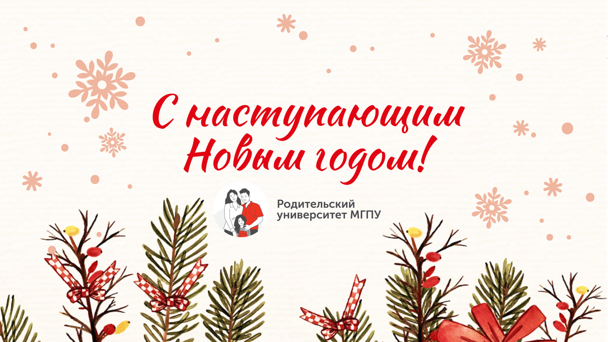 Дорогие читатели! Уважаемые коллеги! «Родительский университет МГПУ» поздравляет вас с наступающим Новым годом! Пусть он принесёт вам радость творчества, азарт во время охоты за новыми знаниями и, конечно, здоровье и счастье!