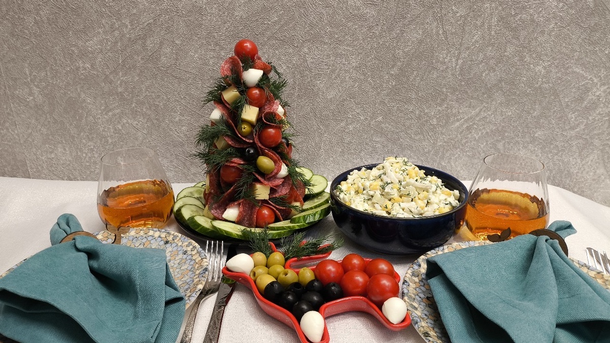 К новогоднему меню хочется добавить не только обязательные «Оливье» и «Селедку под шубой», без которых и Новый год не начнется, но и порадовать себя новым салатом с интересным сочетанием вкусов. Мы подобрали несколько вариантов, из которых можно выбрать тот, что придется по душе. САЛАТ С ТУНЦОМ Ингредиенты: салатный микс – 150 г, филе тунца – 1 банка, помидоры черри – 150 г, огурец – 150 г, авокадо – 1 шт., яйцо перепелиное 4 шт., по столовой ложке соевого соуса, зернистой горчицы, оливкового масла и кунжута. В емкость для салата выкладываем салатный микс, филе тунца, четвертинки помидоров черри, нарезанные на ломтики огурец и авокадо, половинки перепелиных яиц. Сверху поливаем заправкой из соевого соуса, горчицы и оливкового масла, посыпаем кунжутом. САЛАТ С КУРИНОЙ ГРУДКОЙ И ГРУШЕЙ Ингредиенты: помидоры – 3 шт., грудка куриная копченая, груша – 2 шт., сыр – 150 г, соль, перец черный молотый, два зубчика чеснока, майонез 150 г, зелень для украшения. Сыр натираем на мелкой терк