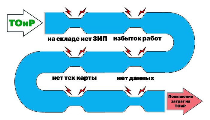 В условиях современного производства оптимизация технического обслуживания и ремонта (ТОиР) становится ключевым фактором для повышения эффективности и снижения затрат. Ниже рассмотрим примеры, где можно найти узкие места в ТОиР и как их устранить. Решение - Периодический мониторинг состояния (имеющимся персоналом) и/или внедрение датчиков, которые будут отслеживать вибрацию, температуру и другие параметры в реальном времени. Это позволит предсказывать возможные поломки и планировать ТОиР до возникновения неисправностей, что сократит затраты на аварийный ремонт. Решение - проведение разбора данных по отказам, надежности и выполняемым объемам воздействий ТОиР. Исключение избыточных и включение необходимых работ, позволит сократить количество ненужных ремонтов и снизить затраты на запчасти и трудозатраты. Так же возможно изменение подхода к ТОиР, лучше это сделать после RCM/RBI анализа (если требуется). Решение - Проведение курсов повышения квалификации с привлечением изготовителей и раз