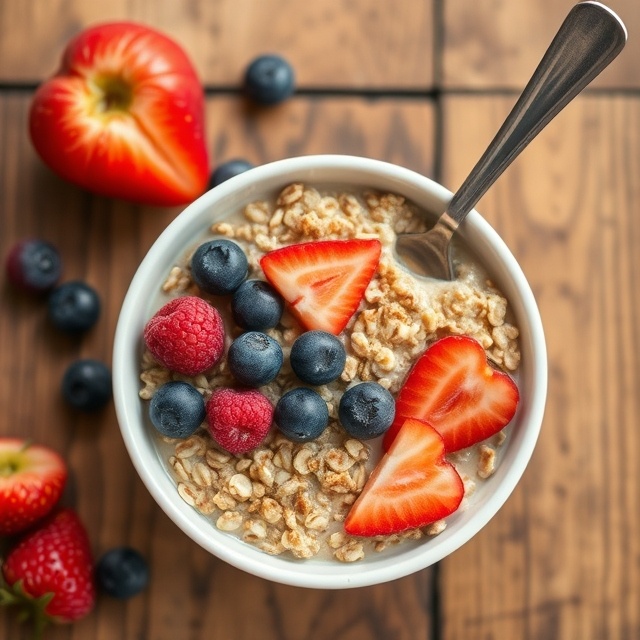 Овсянка богата клетчаткой, что помогает улучшить пищеварение и поддерживает чувство сытости. Фрукты добавляют витамины, антиоксиданты и натуральную сладость.