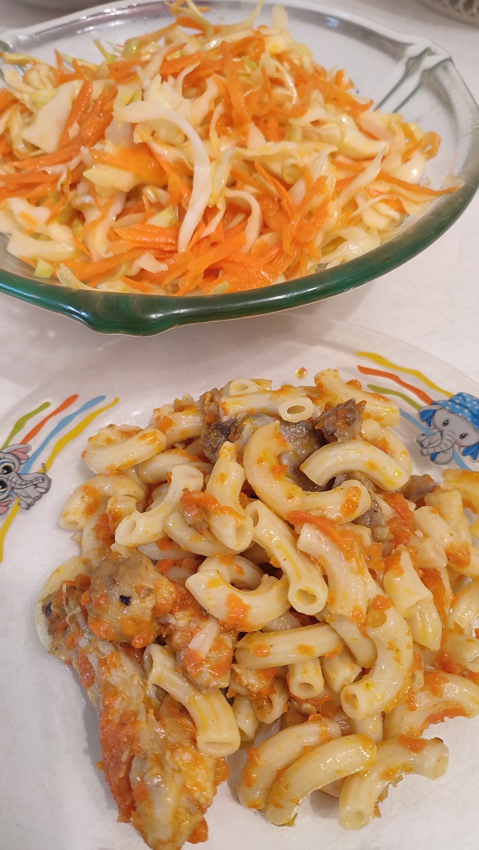 Всем приветик, мои дорогие🤗🤗🤗 Ну и денёк сегодня, конечно. Делать вообще ничего не хочу 🙈🤦♀️ Лееень... Хочу просто лежать. Про мой завтрак вы знаете. Я не ем. Только пью кофе. Еле еле собралась и пошла за сыном. Обед я не готовила. Есть будем то, что готовила вчера. Хотя нет, салат был. Тоже из двух ингредиентов. Капуста и морковь. Кстати очень вкусно. Люблю есть этот салат, когда только сделала. Подогрела макароны с курицей. Очень всё аппетитно 😍 Сыну салат тоже понравился. Дала ребёнку отдохнуть, и отправила делать уроки. Сегодня мы будем украшать ёлку. На ужин хочу кое-что приготовить. Видимо придётся ждать с работы мужа, у него это лучше получается. Сходила за дочкой. Потом с мужем поехали за ëлочными игрушками. Нужно было обновить. Говядина разморозилась. Нарезать на кусочки поменьше. Картошку почистили и тонко нарубили. А ещё лук, морковь и помидоры. Поставили в духовку на 200° на 1 час 15 минут. Это же говядина, долго готовится. Даже не думала,