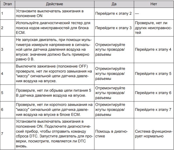 Описание диагностического кода (DTC): низкое напряжение сигнала датчика температуры охлаждающей жидкости. Условия появления DTC: напряжение сигнала датчика температуры охлаждающей жидкости ниже 0,09 В.