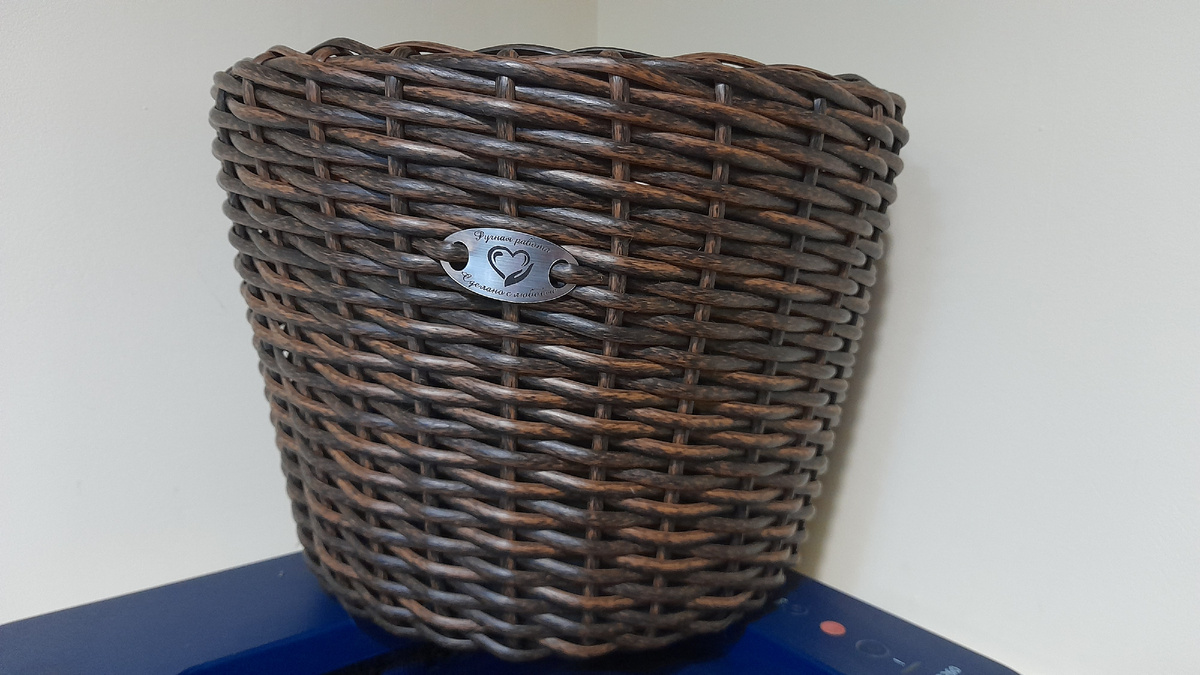 18 ноября получила серый ротанг и сплела такое кашпо. Хотя поначалу оно выглядело совсем иначе, пришлось распускать и переплетать.