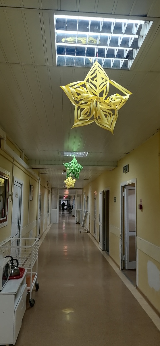 В этот раз в стационар я приехала полностью подготовленная, не как в первый, не с одним пакетиком, с полной дорожной сумкой укомлектованной всем необходимым для недельного пребывания. Больничные коридоры встретили новогодним убранством. Даже здесь чувствовалось приближение нового года.