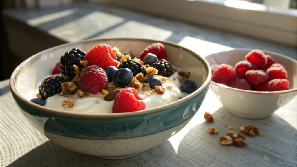 Греческий йогурт с ягодами и орехами