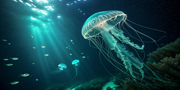 В морских глубинах биолюминесценция - это не роскошь, а средство выживания. Здесь, где солнечный свет не проникает глубже 200 метров, способность создавать собственное свечение стала настоящим козырем в эволюционной игре.