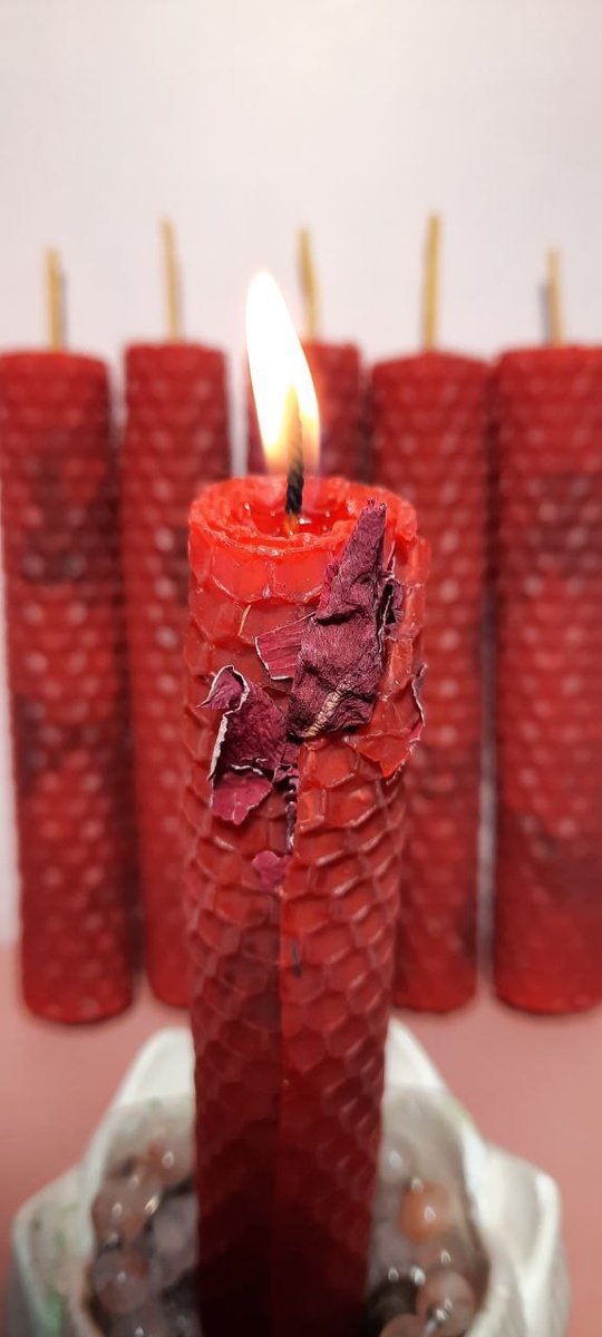 КРАСНЫЕ СВЕЧИ – этот цвет издавна считается цветом любви, страсти и энергии. Для усиления любовного чувства часто зажигают сразу две свечи – как символ взаимности. Красные свечи используют не только в любовных ритуалах, но и чтобы привлечь силу, энергию в ритуал или вдохнуть жизнь в какой-нибудь проект или идею, добиться успеха, достичь поставленной цели. Мои свечи созданы для привлечения любви и страсти, крепких отношений, замужества для людей, находящихся в поиске. Для семейных пар свеча служат для укрепления семейных уз, гармоничного брака, пылкой страсти и любви между супругами. И просто для любви в семье. Кроме того, эти свечи усиливают привлекательность, молодость, магнетизм и женские энергии для тех, кому сейчас не актуален вопрос поиска партнера, а просто хочется проработать свою женскую энергетику. Красные свечи формовые изготовлены с добавлением лепестков роз, лаванды и жасмина. Ведьмины красные свечи изготавливаются вручную без использования форм (прожигаются без фитиля и го
