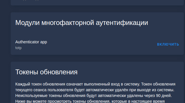 Первое, что нужно сделать - установить на телефон из Google Play (для Android) программку Google Authenticator (далее - GA). Запускаем его (скриншотов с телефона, сорян, не будет, так как политика программы запрещает их делать, но там ничего сложного). В HA входим в профиль пользователя, жмякнув на иконку слева внизу. На закладке "Безопасность" ищем раздел "Модули многофактурной аутентификации" и включаем единственную там опцию, после чего появится окно с QR-кодом, который мы считываем в GA, нажав кнопку "Добавить" вроде.