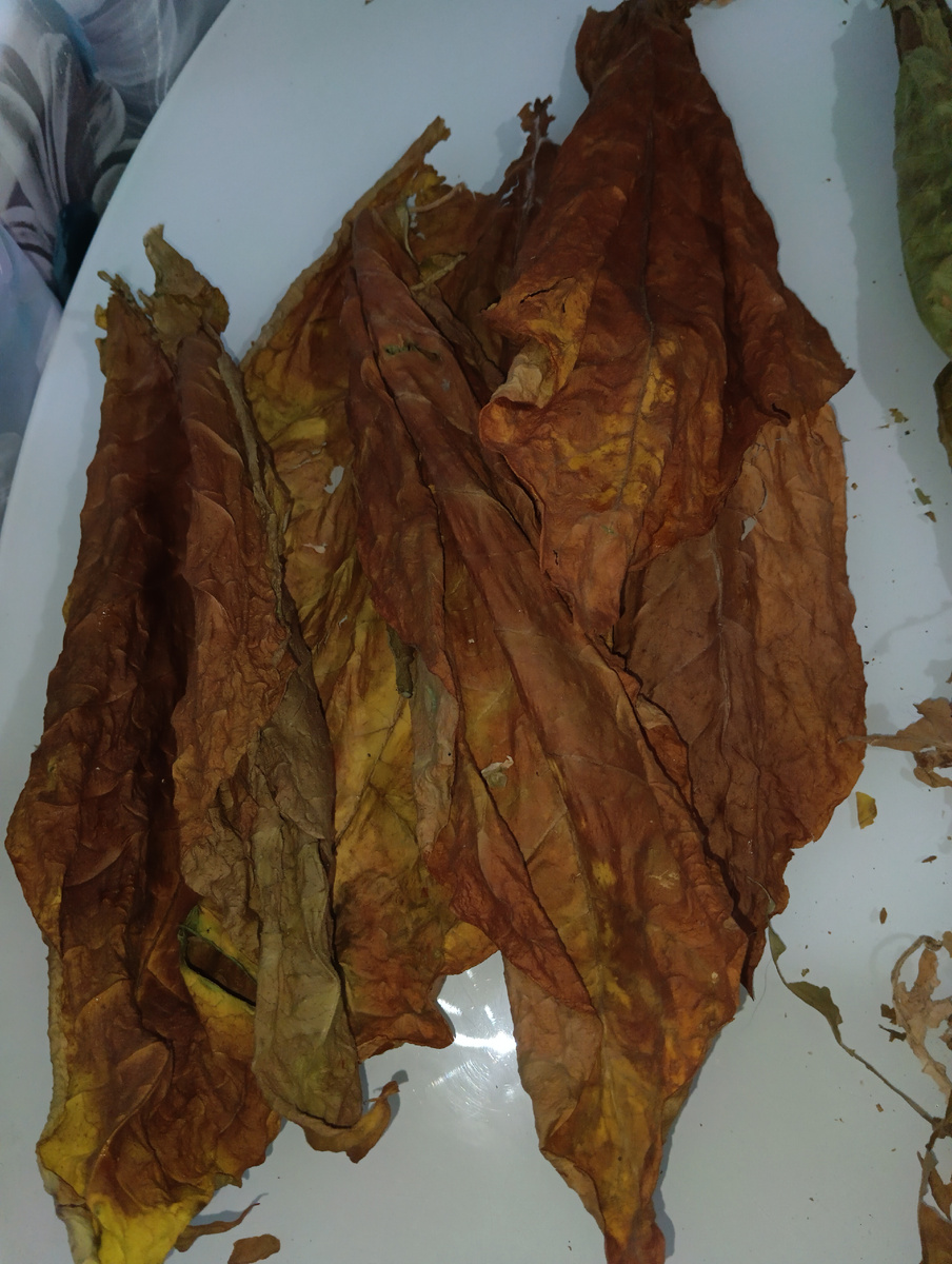 Это те два куста, которые у дома выросли(а пасынки до сих пор ещё растут). То есть самый поздний урожай, собранный в ноябре. Брали только зрелые листья, на верхушке ещё много осталось, ушли в компост. То есть по пол куста можно считать. Листья красивые получились, хоть и не самые большие: Пожилковали: Вот вес: Зелень и жилки на выброс. Упаковали на отлëжку.