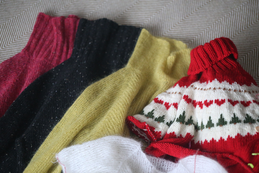 Держала в сюрпризе новогодний свитер. Хотела показать его готовым, но декабрь так мчит, что придется сдаваться раньше и показывать, что есть)) Новогодний свитер здесь, ясен пень, тот что справа)) Левая братия - это готовые из Донегал твида, салатово-жёлтый и белая будущая футболка снизу - Silk Mohair Lana Gatto. Сфотографированы они такой компанией потому, что связаны все по одному расчету, имеют одинаковое количество петель при наборе/грудной части/рукавах. У новогоднего изменена кокетка с реглана на круг, но это тоже скорее подтверждение правила, чем нет. Из чего вяжется новогодний - пока не скажу, потом напишу отдельно. Когда начинала свитер, назвала его "Рождественский". Но сейчас думаю, что если хочу успеть до нового года, то свитер нужно срочно переименовать на "Новогодний")) Подробности: Продолжение следует!