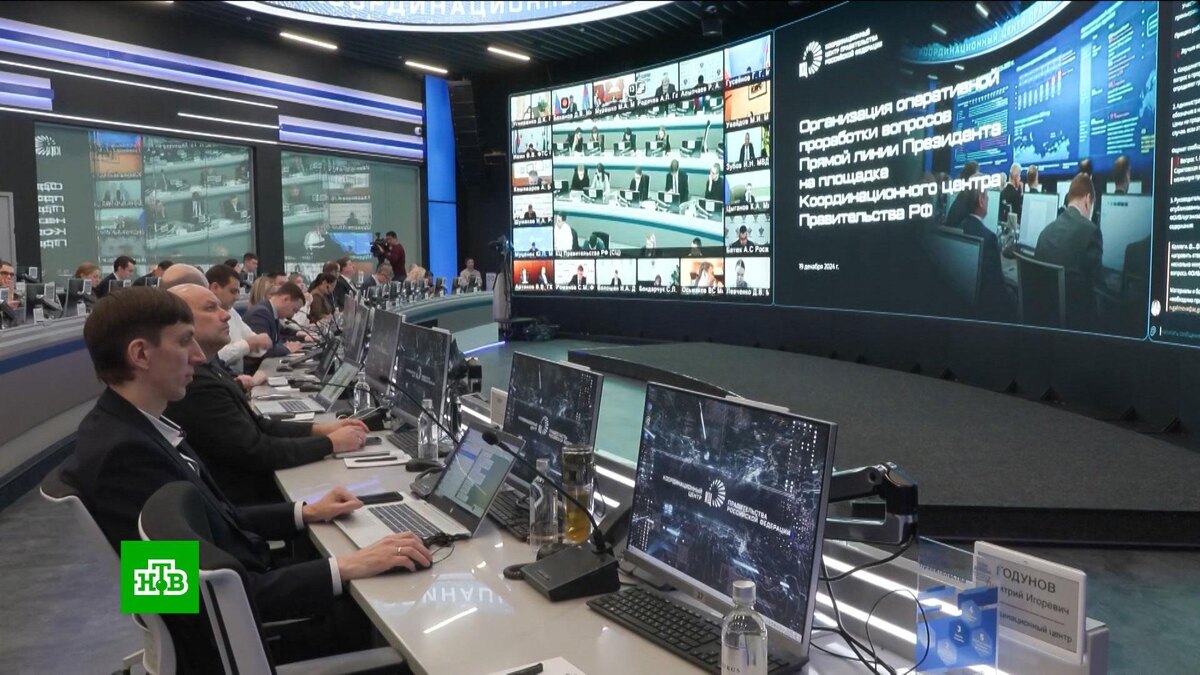 За каждым словом, прозвучавшим в Гостином дворе внимательно следили в координационном центре правительства. Здесь собрались представители министерств и ведомств для оперативной обработки вопросов. Некоторые проблемы, о которых рассказывали президенту, решались сразу же. Основной пласт вопросов в программе «Итоги года с Владимиром Путиным», конечно, о социальной политике: пособия, выплаты.