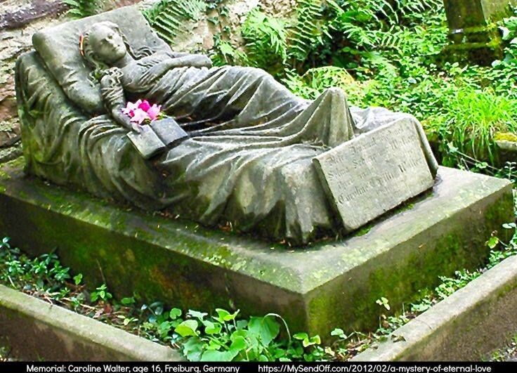 Кэролайн Кристина Вальтер, жившая в Германии во второй половине XIX века, прожив всего 17 лет, ничем особенным отличиться не успела. Однако к ее могиле на кладбище Фрайбурга по сей день идут туристы, которых привлекает романтическая тайна давно умершей девушки. В городе Кэролайн знали как добрую, нежную, отзывчивую девушку. Она училась в школе, любила читать и мечтала о будущем. Но все планы перечеркнул туберкулез. В 1867 году 17-летняя Кэролайн скончалась после тяжелой болезни. Сельма Вальтер, старшая сестра Кэролайн, скорбящая по горячо любимой сестре, заказала необычное надгробие. Скульптор изобразил в полный рост девушку, лежащую на кровати с книгой в руках. Все, кто знал Кэролайн, признавали портретное сходство статуи с умершей. Она словно заснула за чтением, заснула навеки. Навеки осталась открыта и книга, на страницах которой высечена надпись: "По мудрости Божьей, несомненно, мы должны расстаться с самым дорогим и любимым человеком". Проститься с Кэролайн в день похорон пришли м