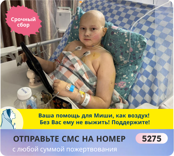 Простая многодетная российская семья просит помощи! Их маленький вундеркинд Мишенька прямо сейчас погибает от РАКа! Вот так в одночасье может разрушиться жизнь любящей семьи. К такому невозможно подготовиться или принять. Нет ничего страшнее, чем услышать, что у твоего ребёнка онкология… Миша так мечтает победить РАК и поехать домой!