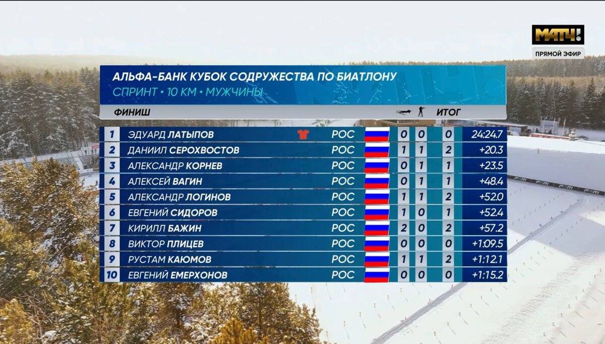 Эдуард Латыпов победил в спринте на Кубке Содружества в Чайковском. 🥇Эдуард Латыпов (Россия) – 24:24.7 (0) 🥈 Даниил Серохвостов (Россия) +20.3 (2) 🥉Александр Корнев (Россия) +23.5 (1) Эдуард уже который раз неплохо стреляет в спринте. Вот честно, год назад о таком даже не приходилось мечтать. А тут целых два ноля. Я же реально уже боюсь что-то писать про его стрельбу - как похвалю, так он в преследовании 4 промаха на одном рубеже выдает. Но все-таки есть же уже положительная тенденция, правда? Сколько в мире было и есть биатлонистов, которые сильные только в спринтах, где неплохо бегут и могут два рубежа пройти без ошибок! Может, сейчас Латыпов хотя бы этот ранг для себя выбьет? А ведь это еще скорость далеко не его. Он мог бы куда быстрее быть на лыжне, но если такова цена баланса с меткостью - то лучше уж так. Хотя за завтрашний день страшновато. Там стрелять надо в два раза больше, а Серохвостов силен и голоден. Даня бежит....Да, Даня даже не бежит, он просто летит по трассе. Ка