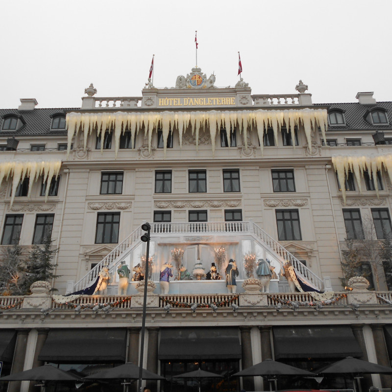 Начнем нашу прогулку возле отеля D´Angleterrе, его всегда очень красиво украшают к Рождеству. В этом отеле останавливались Билл Клинтон, Майкл Джексон, Грейс Келли, Оззи Осборн, Бритни Спирс, Мадонна, и многие другие знаменитости.