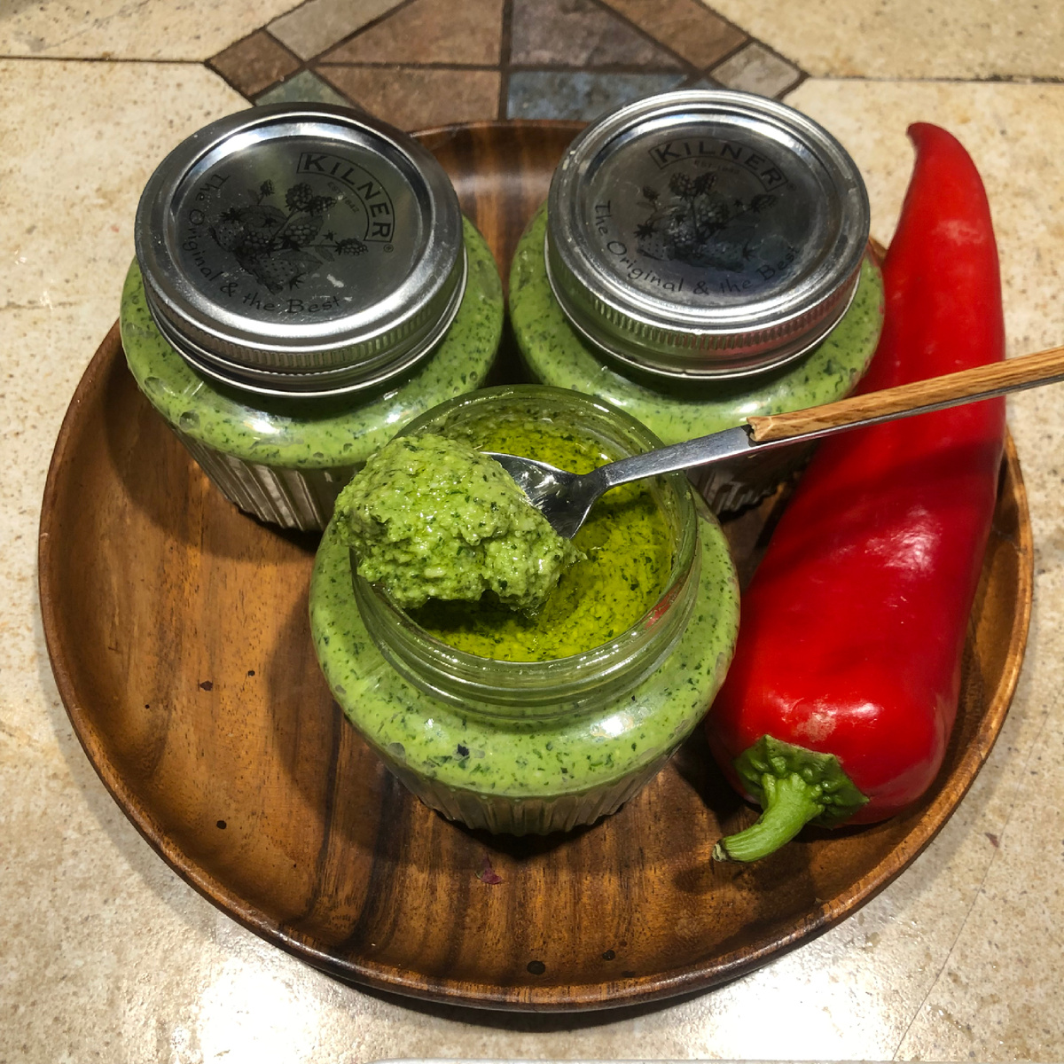 Вкусно! Просто! Полезно! На скорую руку! Готовлю для гостей! Балую всю семью! ОСНОВНЫЕ ИНГРЕДИЕНТЫ (с 1 по 4) - В РАВНЫХ ДОЛЯХ 1. Листья зелёного Базилика; 2. Руккола; 3. Ядра кедровых орехов; 4. Сыр пармезан; 5. Оливковое масло; 6. Соль по вкусу. Основные ингредиенты - поместите в равных долях в Ёмкость для измельчения. СЫР натрите заранее на крупной тёрке. Долю БАЗИЛИКА можно увеличить. МАСЛО добавьте в зависимости от желаемой консистенции. По принципу: Песто маслом не испортишь! Свежая РУККОЛА тоже может внести свою лепту во вкус домашнего Песто! Хотя, и без неё соус получается «пальчики оближешь»! Далее, с хорошим самочувствием, и разгорающимся аппетитом, измельчите блендером вкусные, свежие и полезные компоненты. Приготовьте ХЛЕБ, или ЛАВАШ для обтирания посуды, в которой готовили… Это, понятно, самая "нЯка"! Разложите ПЕСТО по нарядным баночкам. NB! Во избежание заветривания верхнего слоя Песто в банке, залейте 1-2 столовыми ло