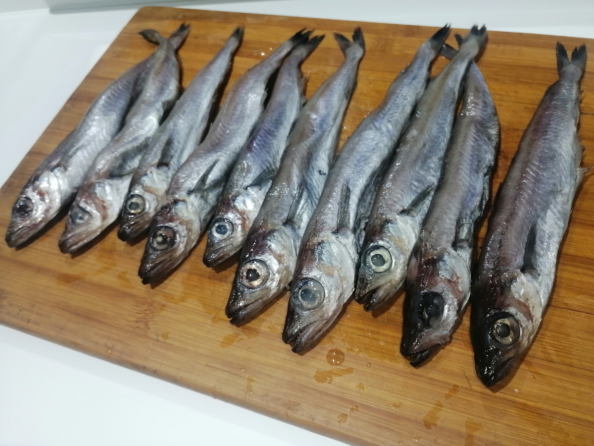 Всем здравствуйте.Иногда так сильно хочется рыбки,ну просто спасу нет.Цены на неё сейчас космические,впрочем как и на всё,поэтому я не стесняюсь и покупаю самую дешёвую рыбу - Патассу. Цена за 1 кг в нашем регионе 80 рублей,поэтому беру всегда по 2-3 кг,и на суп и на жарёху и кошкам и собакам,короче всем) Очень вкусная рыба,не смотря на цену. И так,сегодня банально покажу как почистить и вкусно её пожарить в муке,пальчики оближешь. Начинаем чистить,отрезаем головы и чистим внутренности,ничего сложного. Берём каждую рыбку брюшком к верху и разрезаем до конца,всё вычищаем. После того как удалили внутренности,удаляем темную пленку,просто тянем за белый язычок в конце брюшка. Все...наша рыбка чистая,остается просто сполоснуть. Далее еще проще,посыпаем солью,любимыми специями,у меня это паприка,хмели-сунели и сухой чеснок.Аккуратно делаем массаж каждой рыбке. Насыпаем в тарелку немного муки и обваливаем каждую рыбку со всех сторон,присыпая внутри. Все довольно таки просто.Отправляем рыбу в