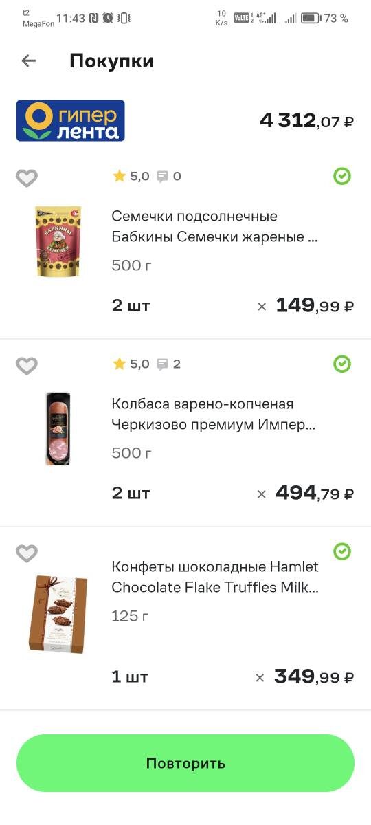Далее приведены скриншоты моей корзины уже после оплаты, пока ждала доставку.