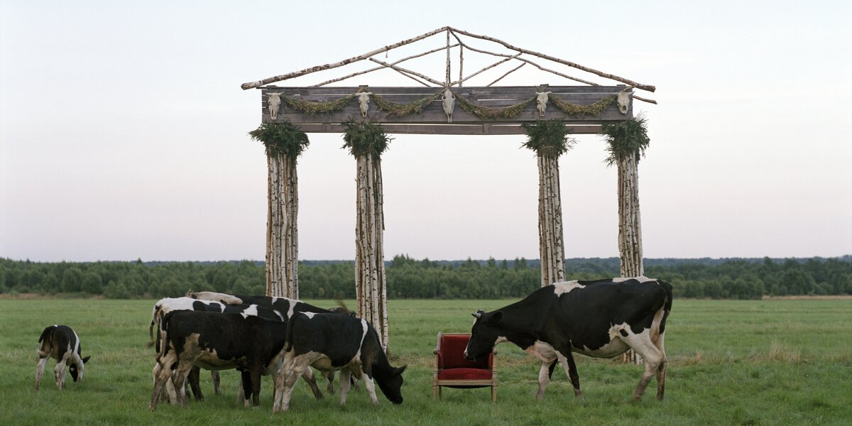 Залы музея превратились в воображаемый музей-заповедник с мухоморами, гусями, крестьянками и коровами. Так художники Сергей Сонин и Елена Самородова показывают, как мог бы выглядеть наш мир. В экспозиции — около 100 произведений, среди которых керамика, фотография, живопись и даже видео-арт.