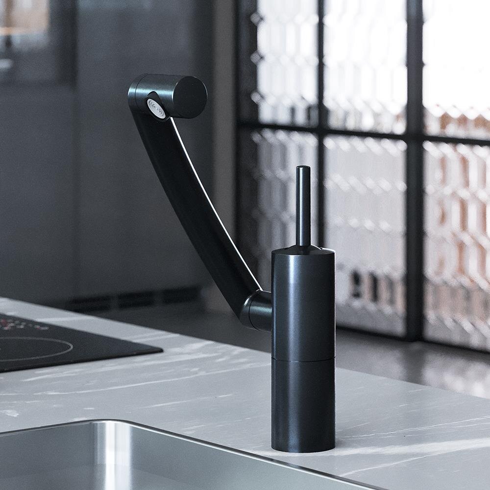 Инженеры бренда создали невероятно функциональный эргономичный излив с удобной и плавной регулировкой по высоте. Теперь уборка и мытье становится удобной как никогда — ведь излив идеально подходит как для высокой, так и для низкой посуды. Никакого дискомфорта и брызг! Глубокий матовый цвет дополнен покрытием High Gloss, которое уберегает поверхность смесителя от мелких повреждений. Невероятная синергия! Вращение излива вокруг своей оси, в совокупности с подвижным аэратором и регулировкой высоты — это дает смесителю Arc право называться самым функциональным смесителем своего класса — ведь вы с легкостью можете направить поток воды в любое место раковины, а так