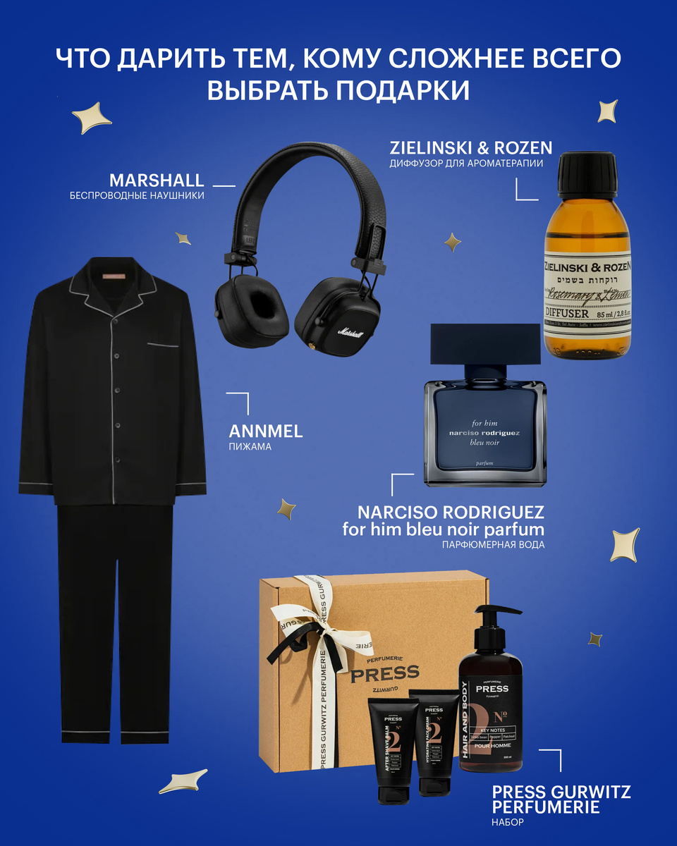 Выбрать «тот самый» подарок для парня, мужа, брата, папы — практически невыполнимая задача. Ведь так хочется услышать в ответ не дежурное «здорово, спасибо», а увидеть в глазах настоящую радость (и чтобы потом еще несколько месяцев вспоминали об этом моменте). Поэтому к задаче подходим со всей серьезностью! В этой статье редакция Золотого Яблока собрала разные варианты подарков, которыми можно порадовать мужчину. 1. Диффузор Zielinski & Rozen