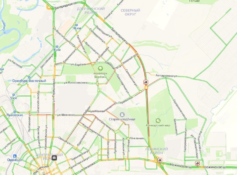 В Оренбурге в пятницу 20 декабря сразу в нескольких микрорайонах фиксируют серьезные пробки, следует из жалоб водителей и данных «Яндекс Пробок». Самая сложная дорожная обстановка — на Загородном шоссе и в районе перекрестков улиц Шевченко и Монтажников с проспектом Победы. Проезд по этим улицам может занять до часа. Пробки фиксируют также на улице Транспортной и Березке. Дорожные заторы затруднили проезд по улице Салмышской. Сложная дорожная обстановка наблюдается в центре города. Проезд по Нежинскому и Беляевском шоссе на 19:00 относительно свободен. Трафик осложняют несколько ДТП. Напомним, на время открытия Новогодней елки в центре Оренбурга 27 декабря частично перекроют движение автомобильного и общественного транспорта. Дорога будет перекрыта на улице Володарского. Проезд запретят на участке от улицы Пролетарской до улицы 9 Января.