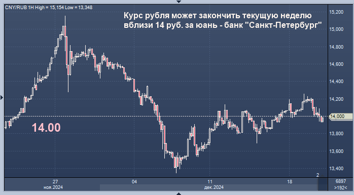 Курс валютной пары юань/рубль может закончить текущую неделю вблизи уровня 14 руб. за юань, считают аналитики банка "Санкт-Петербург".