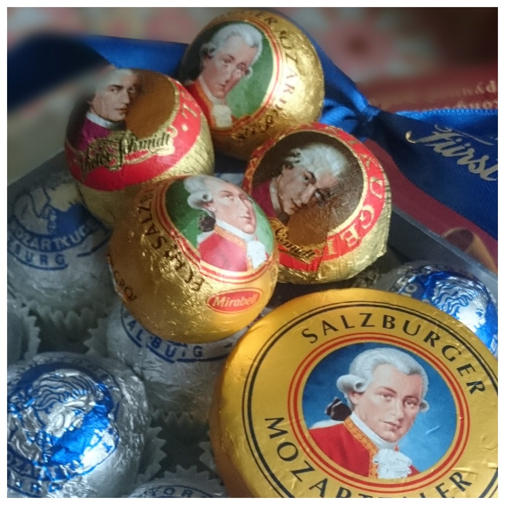 Думаю, все, кто хоть раз бывал в Австрии, привозил с собой в подарок конфетки с марципановой начинкой Mozartkugeln рус. Моцарткугельн («шарики Моцарта»), которых просто тьма в магазинах Вены и по всей Австрии, так же конфеты a la Mozart можно найти за пределами страны йодль: даже в России можно купить Моцарт-конфеты и не только в Москве.