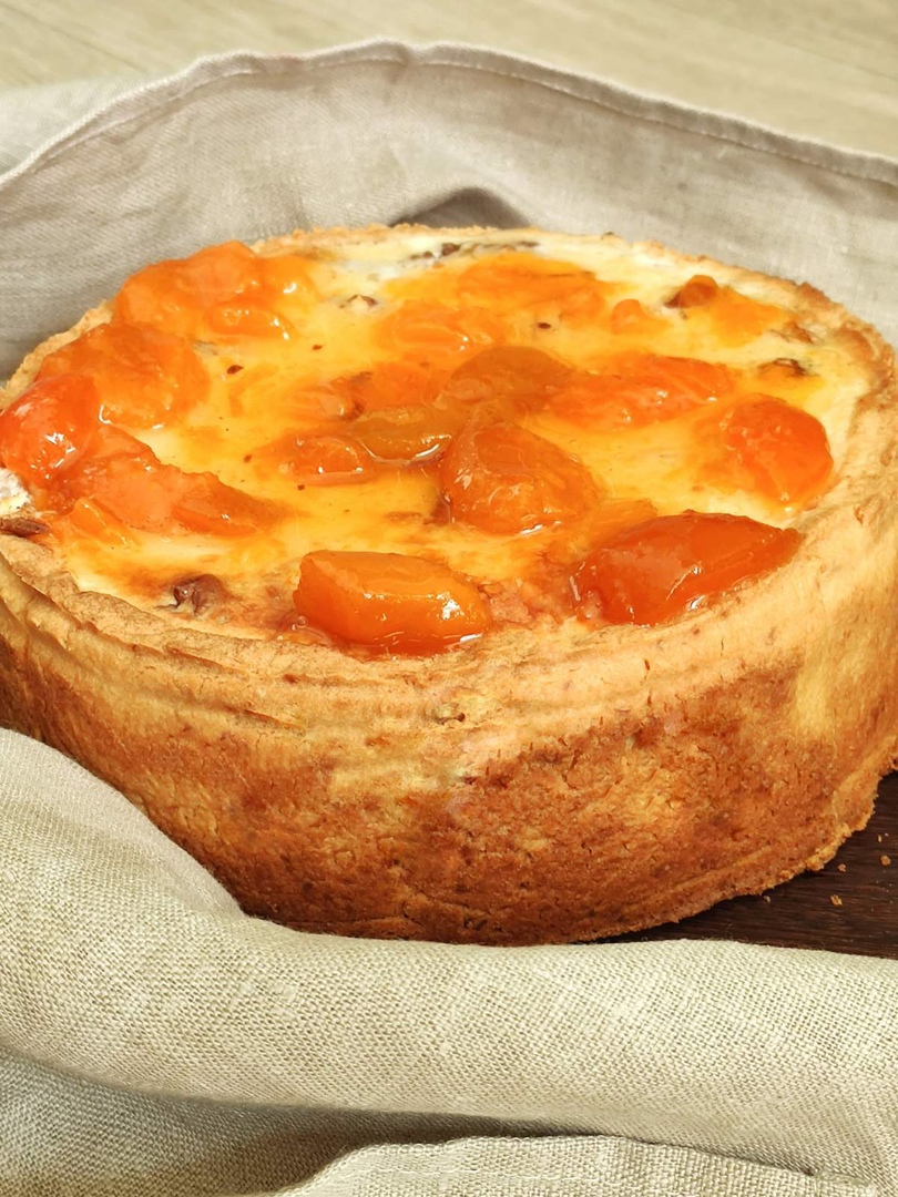 - Остудите пирог и смажьте верх абрикосовым джемом.
