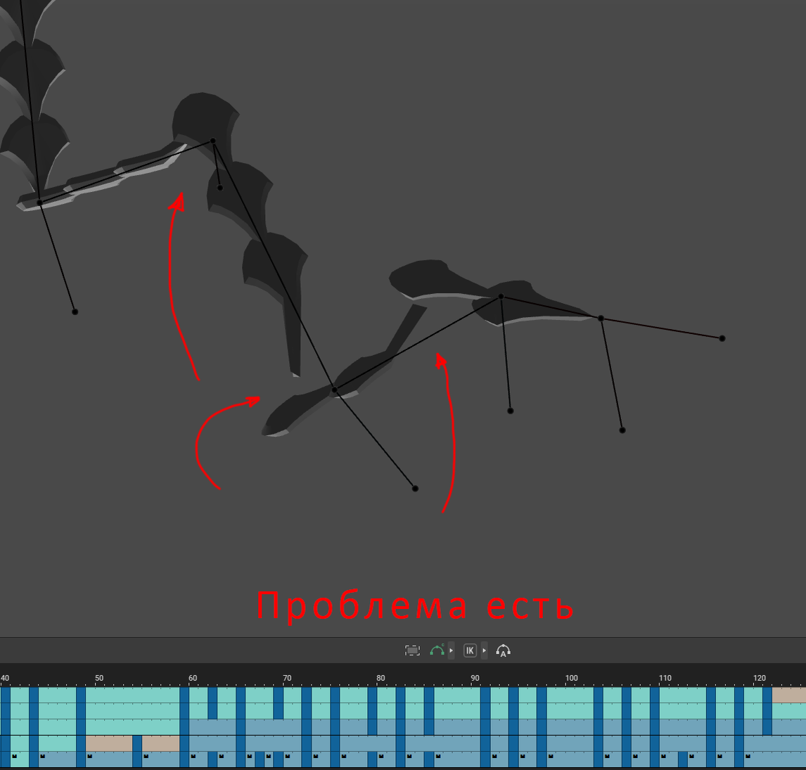 1. Крайне бесячая проблема с оружием, а именно с крюками, кусаригамами, верёвками и остальными оружиями, где уделяется не одна кость, а несколько. В чём проблема: вы на первый день спокойно расставляете позы, записываете кадры, изменяете интерполяцию. Возможно одного дня будет не достаточно и приходится переносить работу на другой день. Тогда вы заметите вот такой дич (см. скриншот)