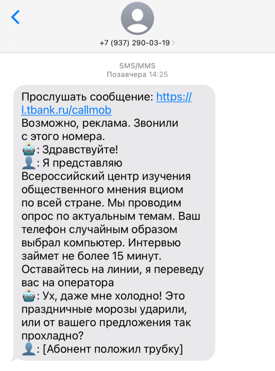 У меня на телефоне стоит ассистент и он просто не пропустит такой звонок, а будет сам задавать наводящие вопросы, а потом мне придет смс , типа этого :