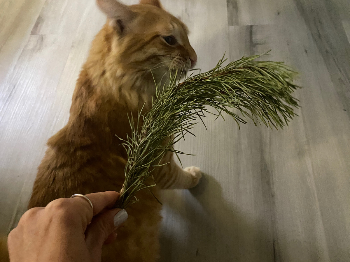 А ваши котики едят еловые ветки?) 🌲
