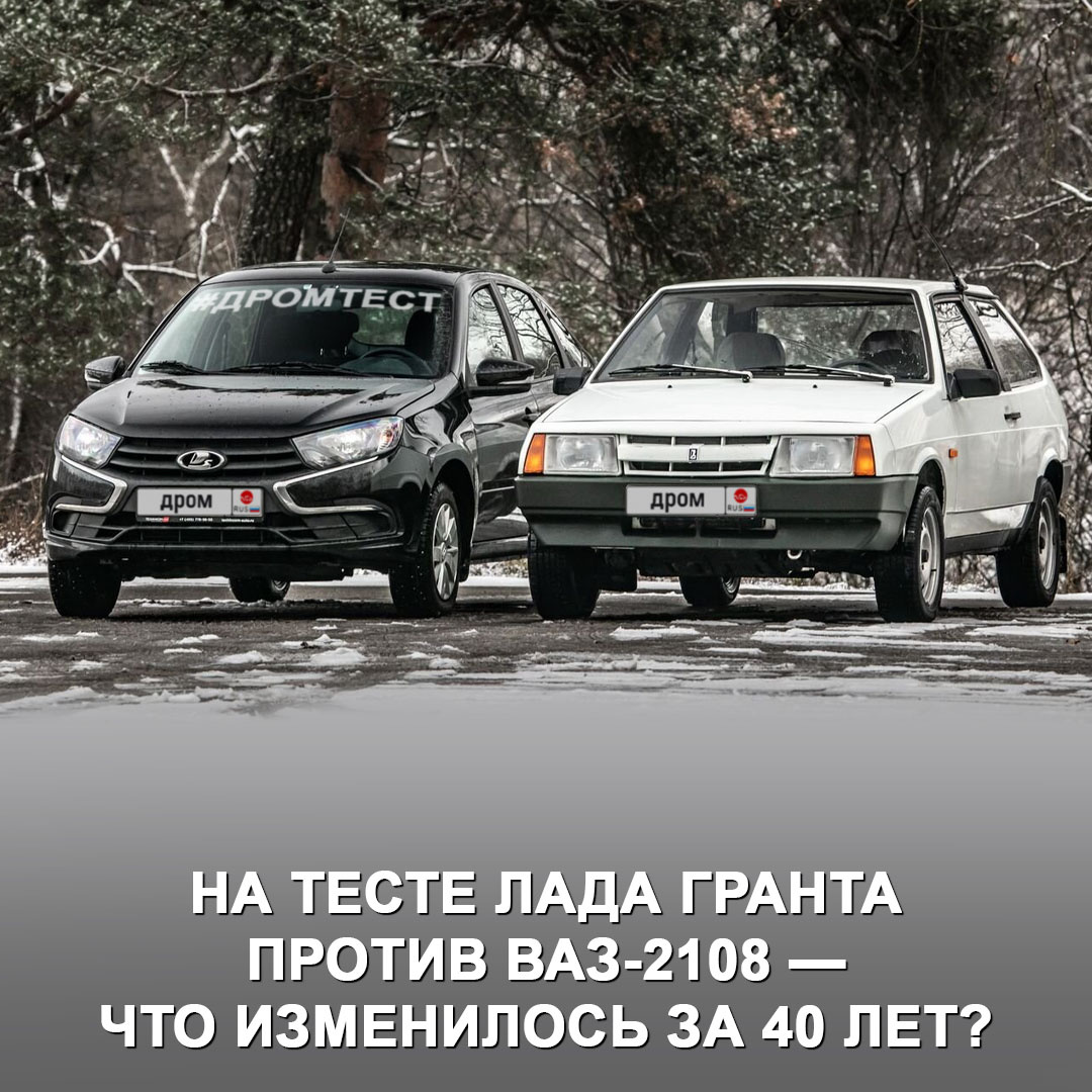 Так много ли между ними различий? 🤔 Машины на тесте: → Восьмёрка 1990 года, 1,5 л, МКПП-5. → Гранта 2023 года, восьмиклапанный 1,6 л, МКПП-5. Экстерьер: → Восьмёрка дизайнерам удалась, а габариты машин близки. → Гранта ничем не выделяется в потоке, но и не отталкивает. Интерьер: → ВАЗ-2108 для своего времени хорошо задуман, приборка информативная, посадка очень низкая, к эргономике легко привыкнуть, но материалы откровенно дешёвые, а сборка плохая, везде щели и зазоры. → Гранта ощущается рывком вперёд, здесь высокая посадка, жёсткий, но добротный пластик, нормальная подгонка деталей, есть электростеклоподъёмники и кондиционер, щиток уже с бортовым компьютером, управление климатической установкой удобнее, да и салон прогревается быстрее. Просторный багажник в кузове лифтбэк — один из огромных плюсов. На ходу: → Восьмёрка очень манёвренная, мотора для города хватает всегда, тормоза адекватные, реально хорошая проходимость по снегу, ходовые качества радуют, но руль тяжеловат. В целом нет