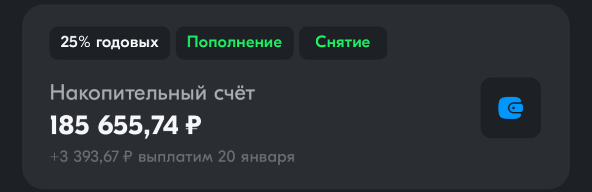Пополнил дополнительно на 25.000₽ — под 25% годовых + пришли проценты - 655.74₽
