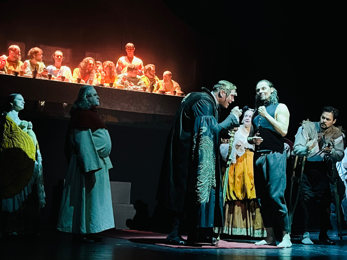 Весь спектакль наполнен оригинальными решениями, раз за разом вызывающими вздох удивления откуда-то из самой глубины души. Начиная с ожившей фрески «Тайная вечеря» и до появления пары белоснежных голубей, зрителю приходится не только задумываться на тем, кто прав, кто виноват, но и испытывать восторг и восхищение от сценографии, замысловатых костюмов, масштабности действия, ведь в постановке, так или иначе, задействована практически вся труппа театра.